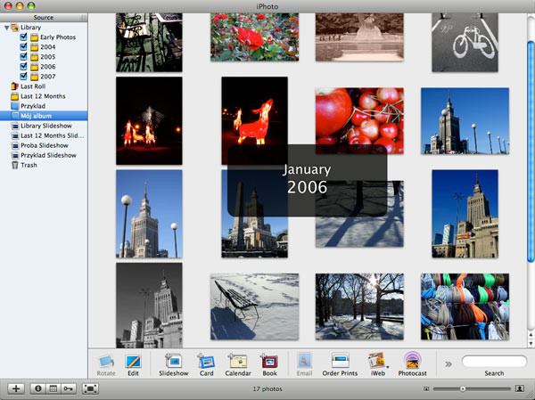 Niestety wymienione programy nie nadają się na Maki, ale dla ich użytkowników nie powinno stanowić to problemu, gdyż w systemie znalazł się program iPhoto, który pozwala na bardzo wygodne tworzenie albumów. Wyposażono go też w sporą liczbę narzędzi edycyjnych.
