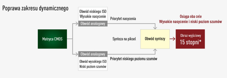 Co ważne, Lumix osiąga to wszystko bez wpadania w charakterystyczne dla technologii warstwowej pułapki. Matryce tego typu, imponujące możliwości w zakresie wydajności przypłacają zwykle jakością obrazu, w tym przede wszystkim zakresem dynamicznym. Temu problemowi w pewien sposób zapobiega sam fakt, iż nie jest to matryca w pełni warstwowa. Gdyby jednak ktokolwiek narzekał na braki w tym temacie, producent przygotował specjalny tryb Dynamic Range Boost, gdzie obraz, niczym w niektórych profesjonalnych kamerach, przetwarzany jest jednocześnie przez obwody o niskim i wysokim wzmocnieniu, co przekłada się na szerszą rozpiętość tonalną i czysty obraz. Realny zakres ok. 15 EV stawia aparat blisko profesjonalnych konstrukcji kinowych.