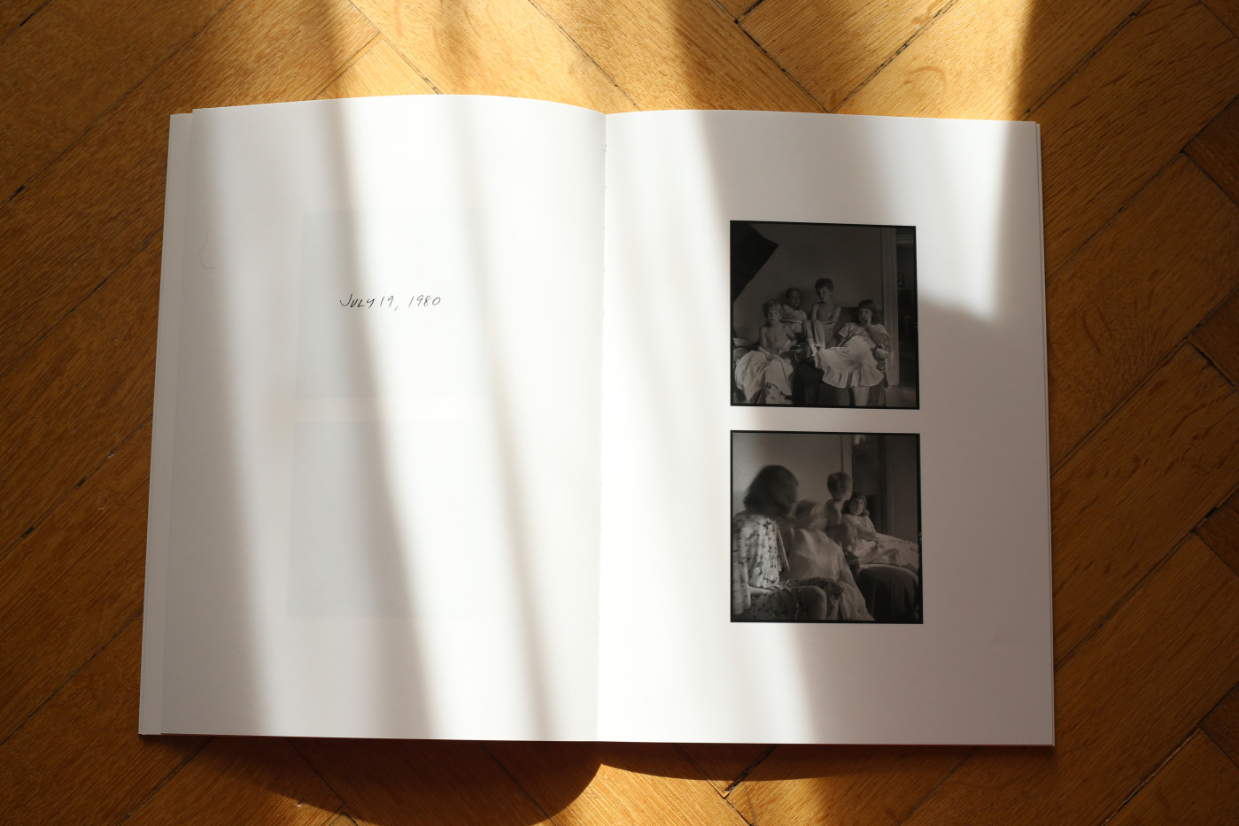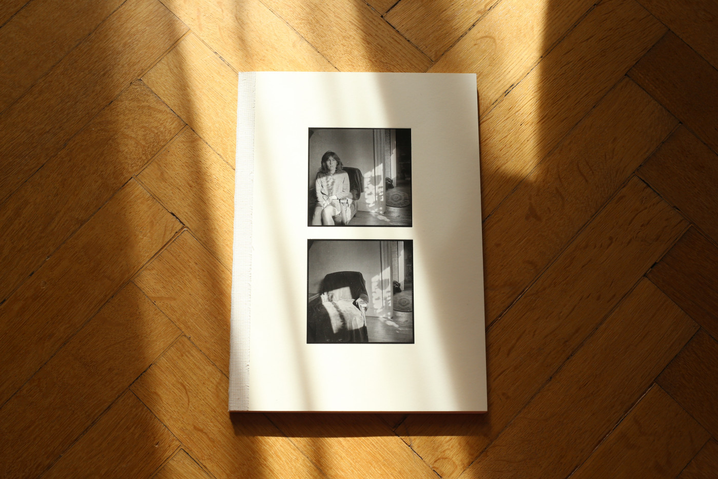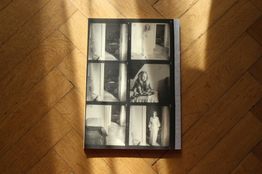 Są jeszcze dwa albo trzy zdjęcia z fotelem i trochę innych z tego samego odcinka czasowego, które uwielbiam. Greg przejrzał je wszystkie i wybrał fotel i światło w naszym „studiu”. Zareagowałam po prostu: „och, idealnie!”. To był jego pomysł, żeby książka wyglądała jak połączenie notatnika i stykówki. W przeszłości robiłam małe odbitki, które wkładałam do albumów i które mogły być łatwo przemieszczane i edytowane. To powszechna metoda, którą stosują artyści wszelkiej maści. Greg po prostu zaadaptował ją do formy książki.