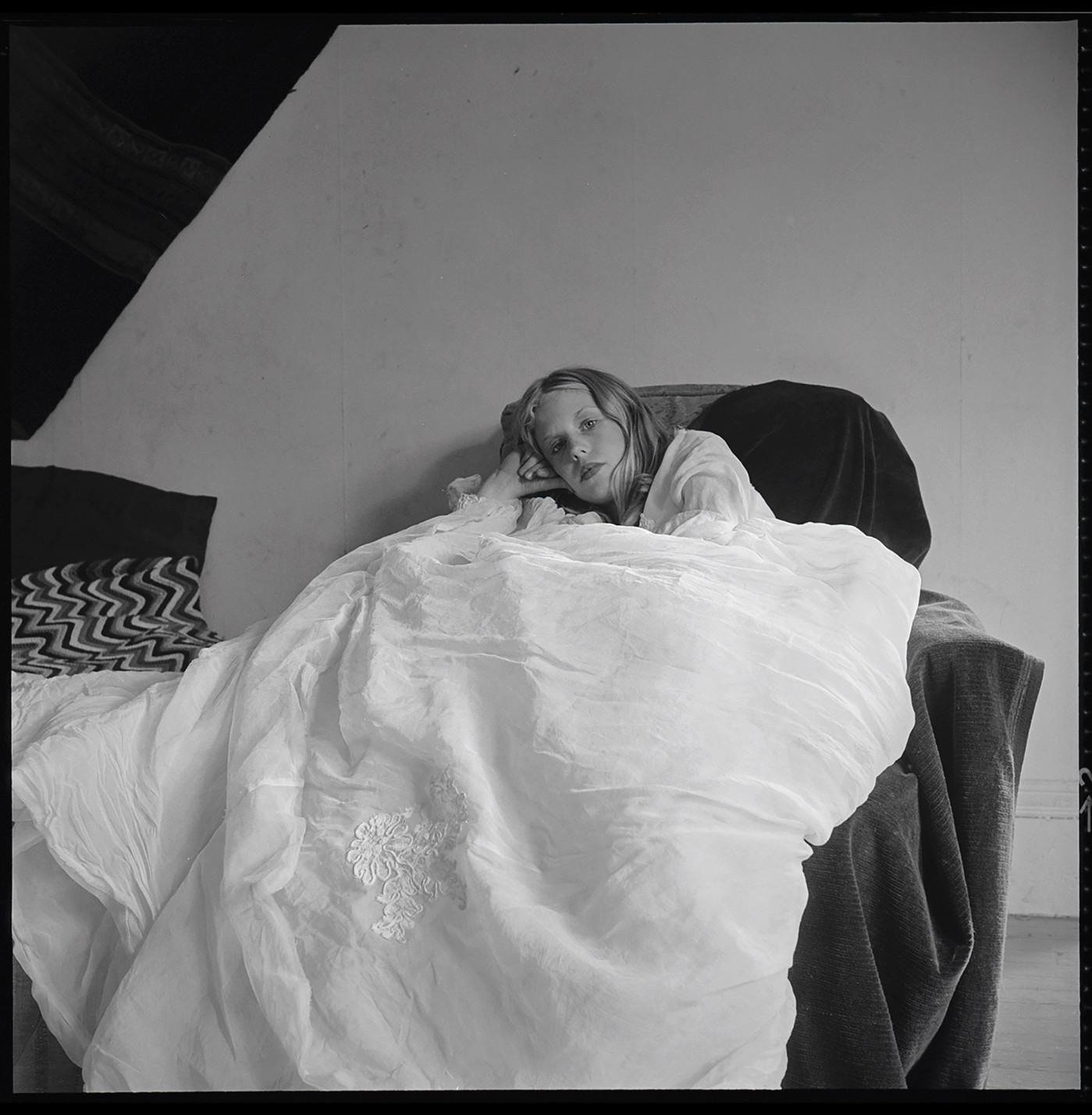 Dostrzegłam go już wtedy. Tak, jak mówiłam, widziałam, że to, co mogę sfotografować w domu, jest o niebo lepsze od czegokolwiek, co mogłabym zrobić gdzieś indziej. Byliśmy małą grupką wykładowców i studentów. Ludzie zareagowali pozytywnie, więc wykorzystywałam swoje zdjęcia w ramach prac zaliczeniowych, prac krytycznych, wystaw studenckich i tak dalej. Wiedziałam od samego początku, że warto je robić. Były też powody praktyczne, związane ze sprzętem. Miałam lustrzankę dwuobiektywową z samowyzwalaczem, ustawiałam ją na statywie i biegłam, żeby zmieścić się w kadrze. Rolka filmu mieściła 12 klatek i nie była wtedy tak droga jak praca na kolorowej kliszy. Musiałam zmieścić się w budżecie.