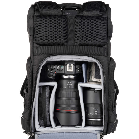 Think Tank FocusPoint RollTop 22L przeznaczony jest dla lżejszych zestawów – np. bezlusterkowców APS-C z kilkoma obiektywami czy kompaktowych pełnoklatkowych body z dwoma-trzema szkłami. Większy model 30L sprosta wymaganiom profesjonalistów i hybrydowych twórców wideo, mieszcząc pełnoklatkowy korpus z jasnymi zoomami f/2.8, zestawem kilku stałek, a nawet średnioformatowym Fuji GFX100SII z trzema obiektywami.