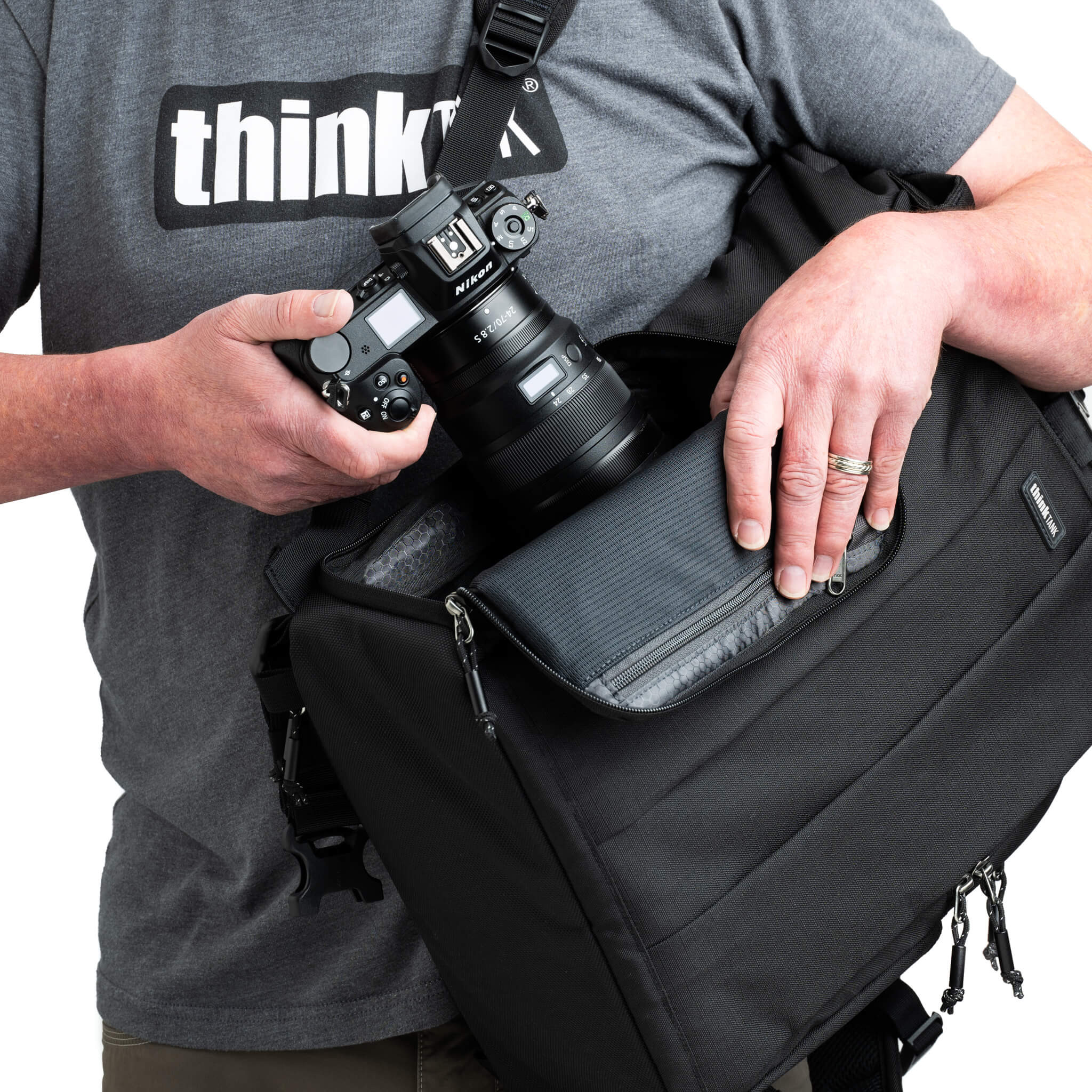 Na pierwszy rzut oka wyglądają jak klasyczne plecaki miejskie, jednak wnętrze zostało zaprojektowane pod kątem transportu aparatów, obiektywów i akcesoriów. Regulowane zamknięcie typu roll-top pozwala dopasować przestrzeń do ilości sprzętu, a szybki dostęp od strony pleców i z boku ułatwia wyciąganie aparatu w każdej sytuacji. Do tego dochodzi wyjmowany wkład na sprzęt.