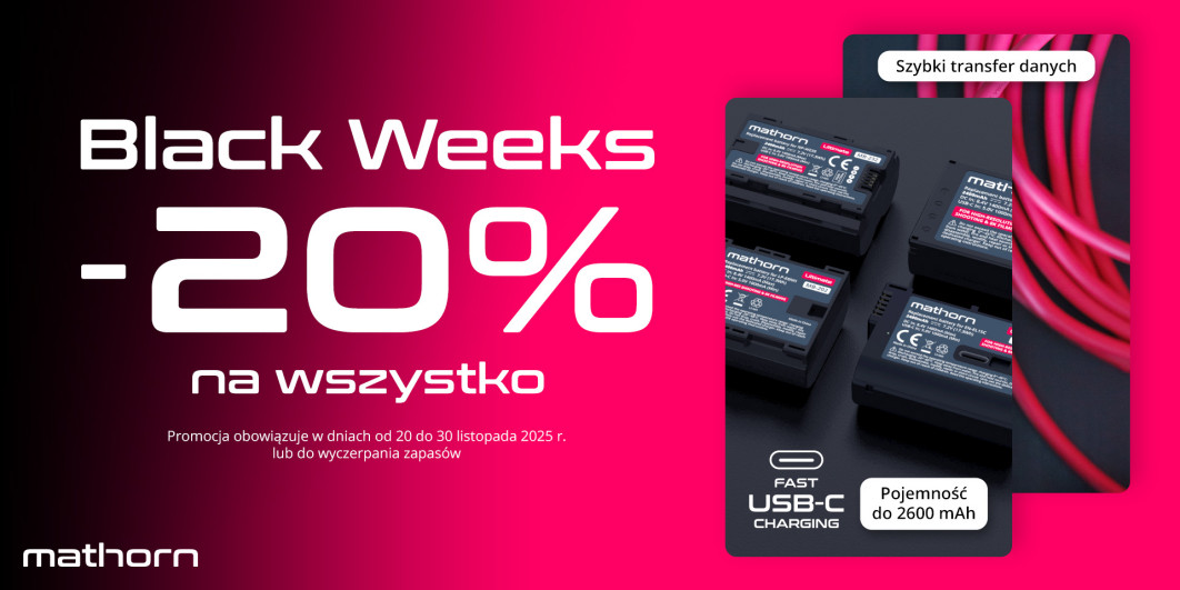 Mathorn to akcesoria, które realnie poprawiają komfort pracy fotografa: dłuższy czas działania aparatu, stabilne połączenie tetheringowe i wygodne ładowanie bez specjalnych ładowarek.