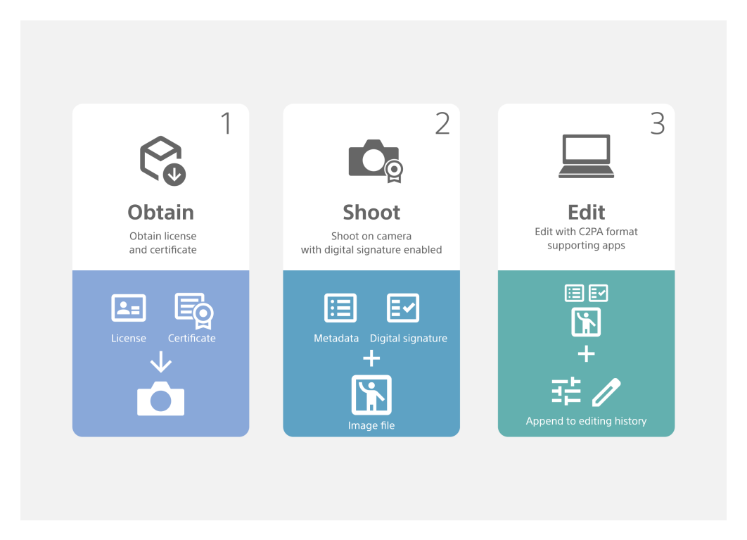Sony od dłuższego czasu współpracuje z czołowymi agencjami i outletami mediowymi na rzecz wprowadzenia spójnego i użytecznego mechanizmu pozwalającego na weryfikację prawdziwości otrzymywanych materiałów. W ostatnim czasie szereg aparatów producenta otrzymał wsparcie dla zapisywania w zdjęciach dodatkowych metadanych zgodnych ze standardem C2PA, które pozwalają prześledzić całą drogę, jaką przeszedł dany obraz - od wciśnięcia spustu migawki aż po dokonane na nim edycje - i odczytać informacje na temat autorstwa.