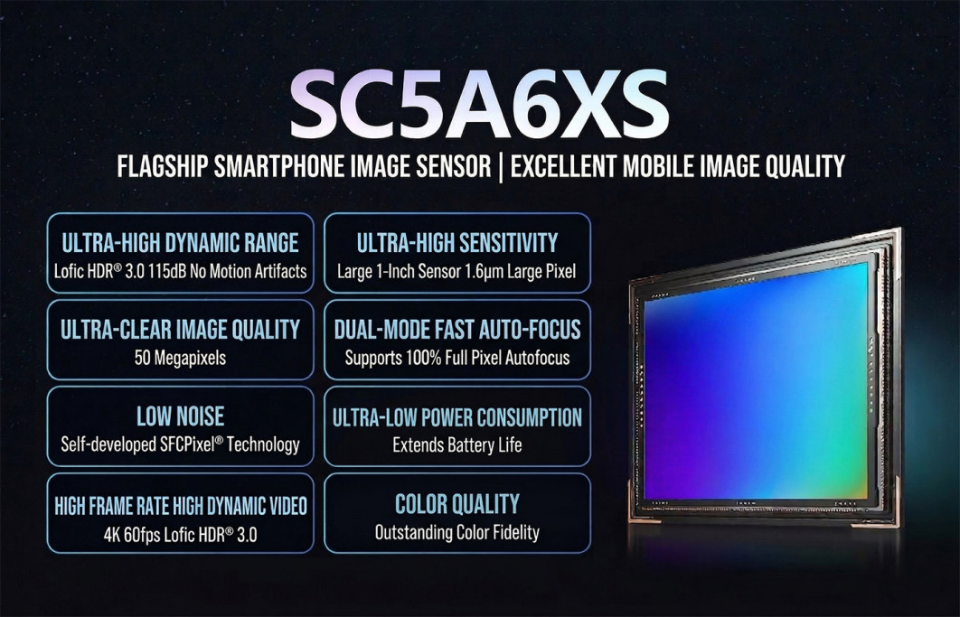 Obecnie najpotężniejszym i najbardziej zaawansowanym sensorem w ofercie jest zaprezentowana pod koniec marca matryca SmartSens SC5A6XS, która według plotek trafić ma m.in. do nadchodzących flagowców Huawei. To 50-megapikselowy sensor w rozmiarze 1” w technologii warstwowej, wykorzystujący najnowszą architekturę LoFic, która pozwalać ma na osiągnięcie rekordowej w tym segmencie dynamiki na poziomie 19 EV oraz niskich szumów wysokich czułości. Do tego superszybkie przetwarzanie dzięki budowie typu Stacked, możliwość rejestracji wideo 4K do 120 kl./s i szybki autorski fazowy autofokus Allpix ADAF.