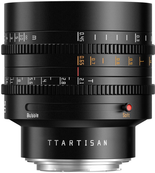 Drugi model, TTArtisan 50 mm T2.1 Soft-Bubble, to standardowa ogniskowa przeznaczona do bardziej uniwersalnych zastosowań - od wywiadów po ujęcia dokumentalne. Optyka składa się z 7 soczewek w 6 grupach, a charakter pracy przysłony oraz mechanika sterowania ostrością są identyczne jak w wersji 85 mm. Ten obiektyw również oferuje przełączany charakter rozmycia tła oraz 11-listkową przysłonę.