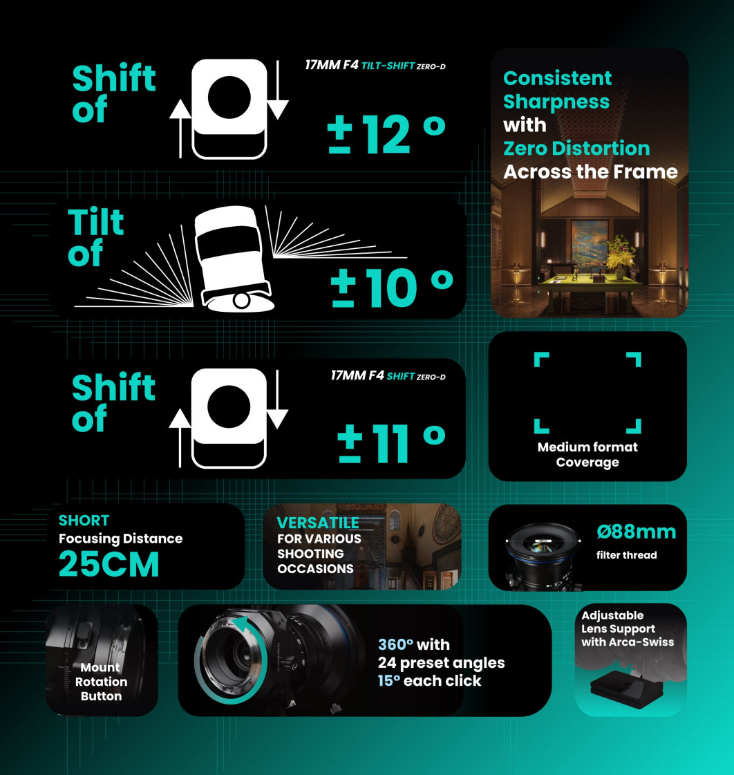Dla nieco mniej wymagających, obiektyw oferowany będzie też w wersji Laowa 17 mm f/4 Zero-D Shift - bez opcji tilt - w bardziej przystępnej cenie 999 dolarów (ok. 3650 zł).