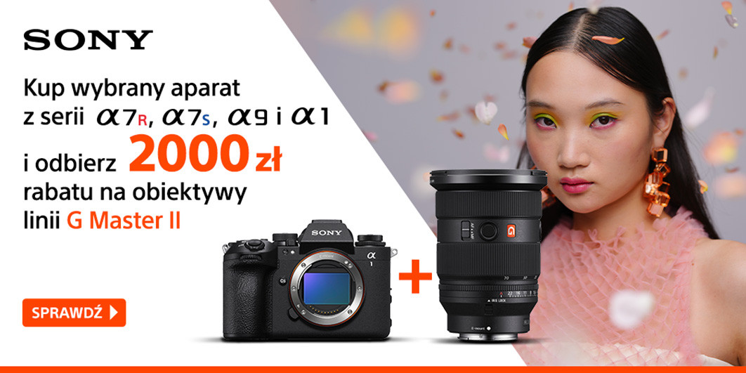 Do 1 lutego 2026 roku wszyscy kupujący aparaty Sony A1, Sony A1 II, Sony A7R IV, Sony A7R V, Sony A7S III i Sony A9 III otrzymają rabat w wysokości 2000 zł jeśli zdecydują się jednocześnie na zakup któregoś obiektywu z serii GM II. W przypadku modelu Sony A7 V rabat wyniesie 1000 zł.