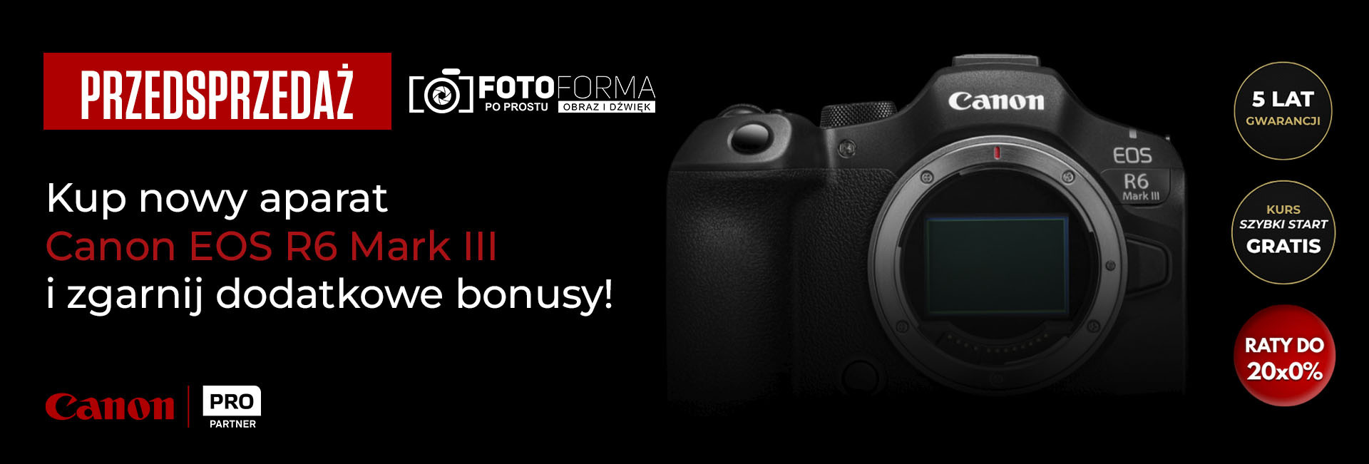 Sprawdź szczegóły promocji na stronie: fotoforma.pl/kup-nowy-aparat-canon-eos-r6-mark-iii-i-zgarnij-dodatkowe-bonusy