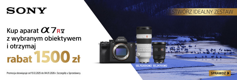 Sprawdź szczegóły promocji na stronie: fotoforma.pl/kup-aparat-a7r-v-i-zyskaj-rabat-1500-zl-na-wybrany-obiektyw-sony
