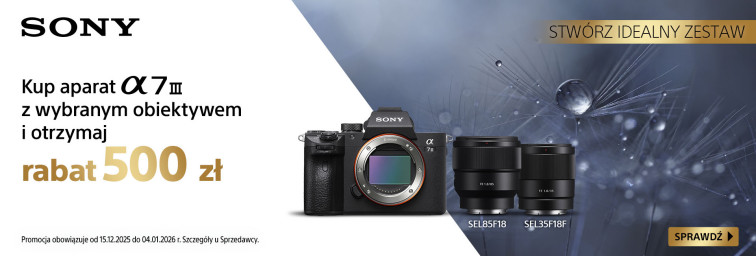 Sprawdź szczegóły promocji na stronie: fotoforma.pl/kup-aparat-a7-iii-i-zyskaj-rabat-500-zl-na-wybrany-obiektyw-sony