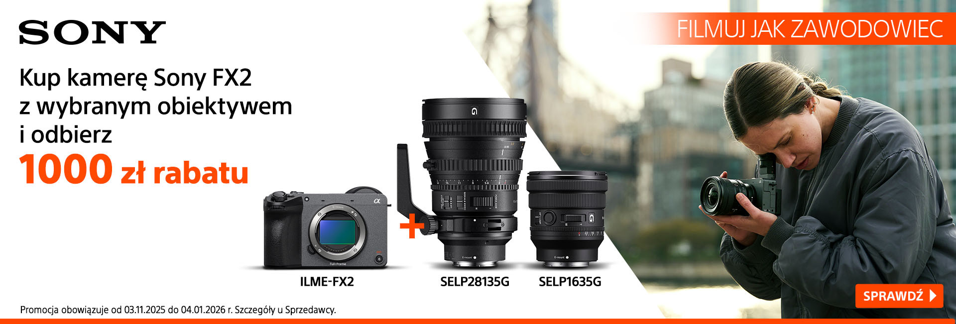 Sprawdź szczegóły promocji na stronie: fotoforma.pl/kup-kamere-sony-fx2-z-wybranym-obiektywem-i-odbierz-1000-zl-rabatu