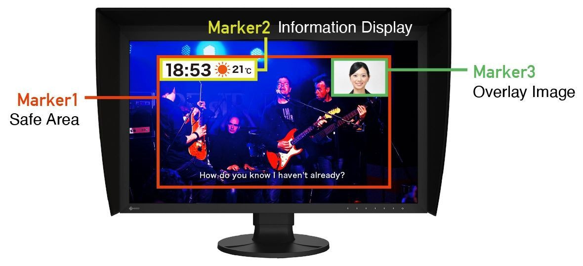 W pracy na wielu projektach przydatna jest też funkcja Sync Signal, automatycznie ustawiająca parametry takie jak jasność, EOTF i gamut na podstawie metadanych sygnału wejściowego, a w zastosowaniach emisyjnych pracę ułatwią znaczniki kadru (m.in. Safe Area Marker), które pozwalają sprawdzić położenie tekstu i grafiki względem obszarów bezpiecznych.
