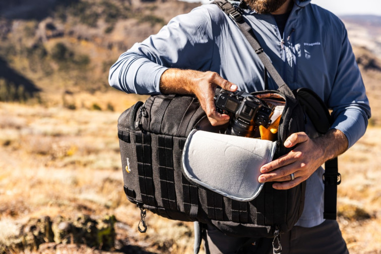 Propozycja również profesjonalna, choć bardziej kojarzona z pracą w terenie. ProTactic od Lowepro to prawdopodobnie najpopularniejszy teraz produkt marki. Nic dziwnego – panel pełen praktycznych mocowań umożliwia zabranie dodatkowego sprzętu, który nie zmieścił się do plecaka. Pozwala to na zabranie ze sobą takiego zestawu: