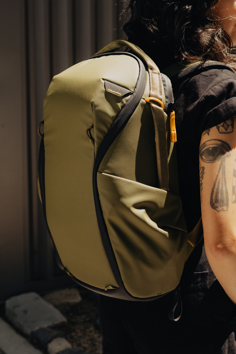 - Everyday Backpack oferuje dostęp do wnętrza zarówno od góry, jak i z boków, co przekłada się na szybkie wyciąganie aparatu bez konieczności zdejmowania plecaka.