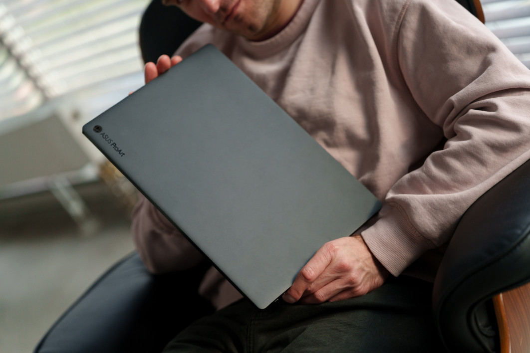 Mocne podzespoły uzupełnia topowej klasy wyświetlacz, wręcz idealny do mobilnej pracy z materiałem zarówno fotograficznym, jak i filmowym. Jest nim szerokogamutowy panel ASUS Lumina OLED o rozdzielczości 4K i przekątnej 16”. Oferuje 100% pokrycia DCI-P3 przy zachowaniu błędów koloru na poziomie Delta E < 1, walidacją Pantone na start, a także obsługą HDR z kontrastem 1 000 000:1 i czasem reakcji 0.2 ms. Wyświetlacz jest na dodatek dotykowy, więc jego funkcjonalność automatycznie rośnie - podczas pracy możemy pomagać sobie palcem, ale zdecydowanie lepiej używać opcjonalnego rysika ASUS Stylus, który rozpoznaje aż 4096 poziomów nacisku.