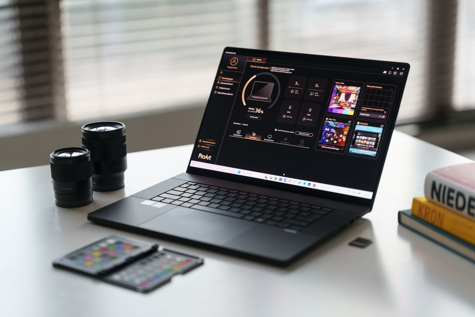 Omawiając ProArt P16 nie można zapomnieć o ProArt Creator Hub, aplikacji, która pełni rolę centrum zarządzania: pozwala monitorować stan laptopa, dobierać ustawienia pod konkretne zadania i regulować profile wentylatorów. Za jej pomocą można również kalibrować ekran i tworzyć własne palety barw w oparciu o bazę Pantone.