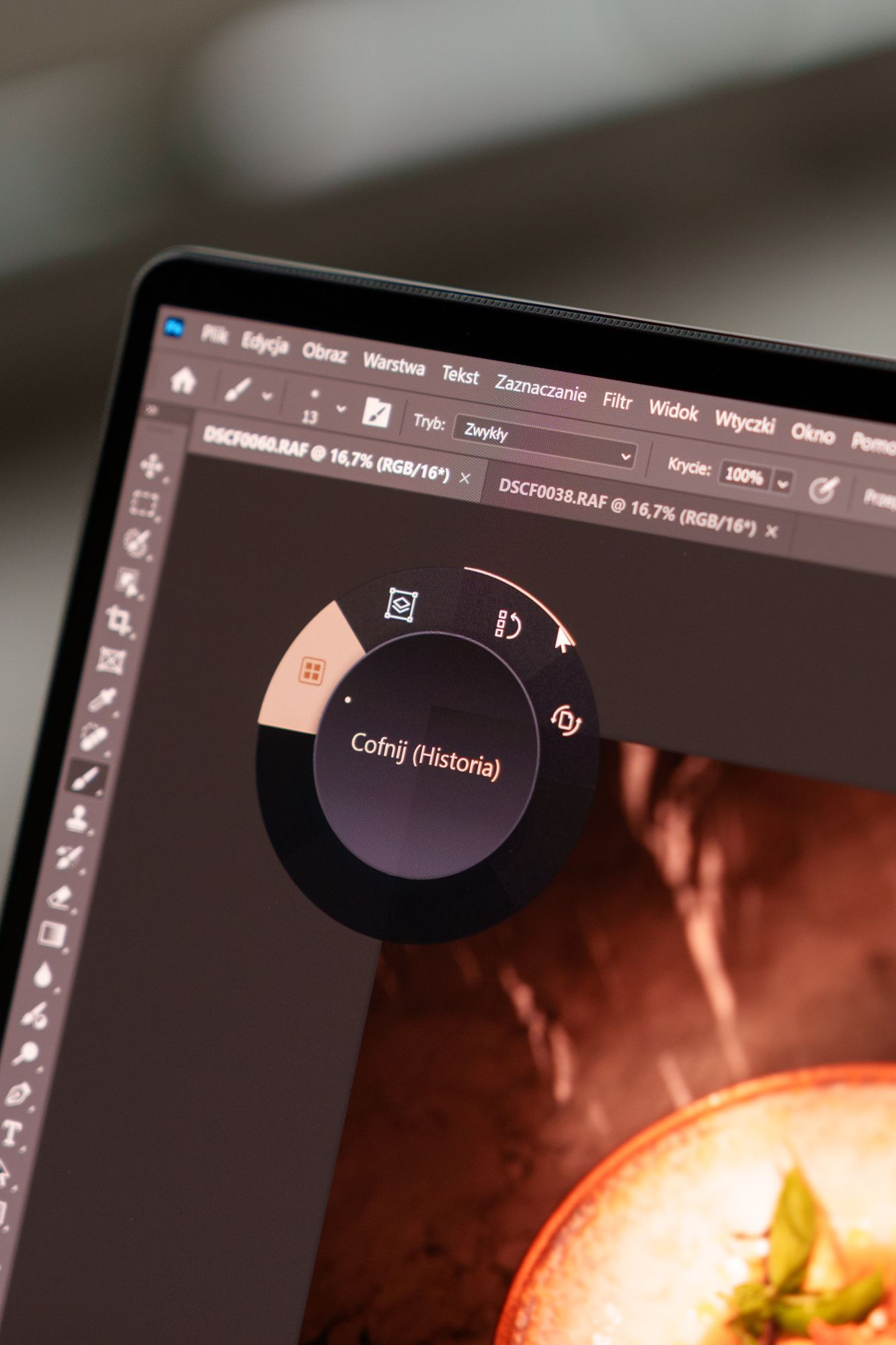 Na koniec trzeba jeszcze zaznaczyć obecność wielofunkcyjnego sterownika wbudowanego w touchpad - kolejny przydatny element, który może ułatwić i przyspieszyć nasz workflow. DialPad to dotykowy odpowiednik fizycznego pokrętła z serii laptopów StudioBook. Działa w pełnej integracji z programami Adobe, DaVinci i innymi aplikacjami. Dla każdego z tych programów możemy przypisać mu grupę funkcji, którymi będziemy sterować, np. zmieniać ekspozycję, rozmiar pędzla czy powiększenie widoku.