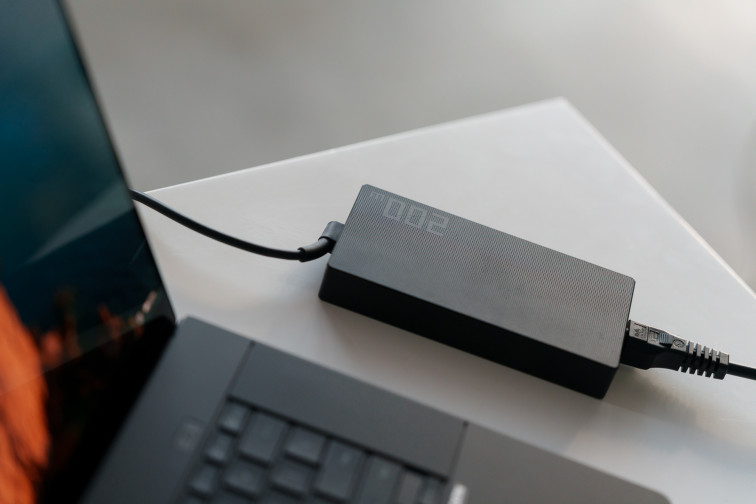 Choć laptop jest stosunkowo cienki i poręczny, w zestawie dostajemy duży i ciężki zasilacz, który na dodatek ma niestandardowy wtyk. To pewien minus, ale rekompensatą jest aż 200 W mocy (10A). Dzięki temu zasilaczowi naładujemy do pełna baterię w ciągu 1.75 godziny. Oczywiście komputer może być ładowany także przez USB-C, ale wtedy trwa to dłużej.