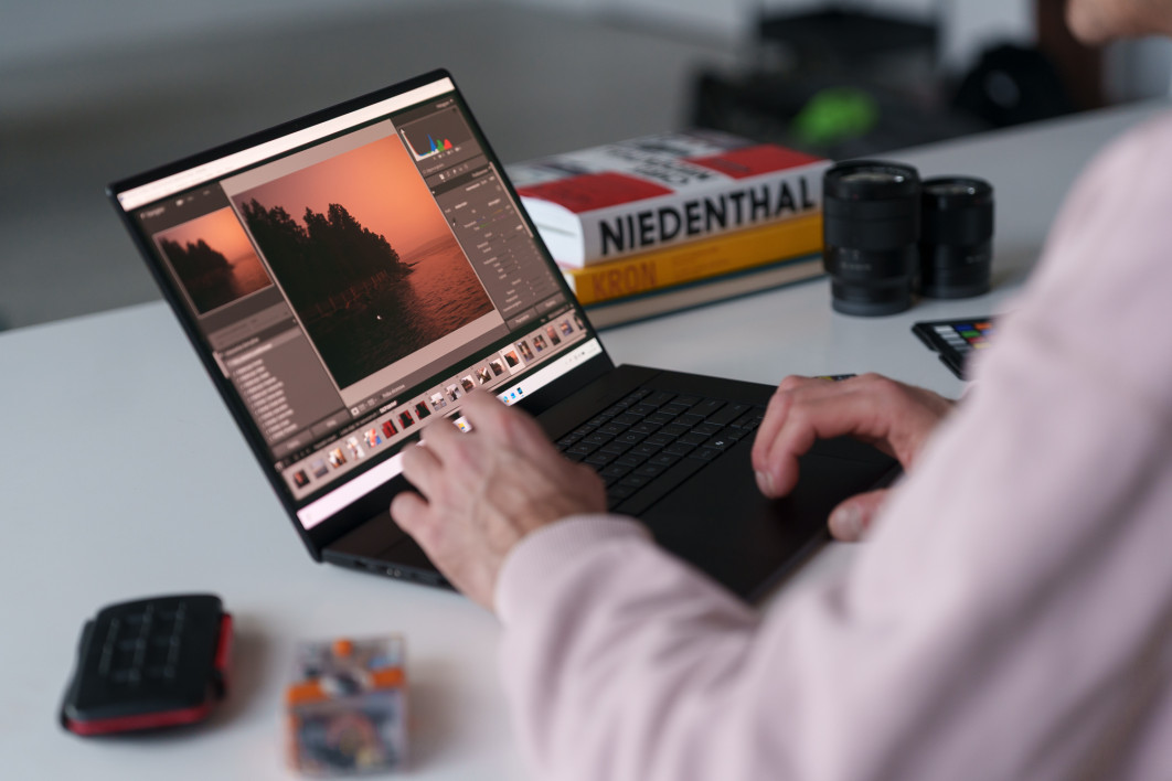 Generalnie w komputerze duża ilość pamięci RAM i szybka karta graficzna (GPU) zapewniają płynną edycję i podgląd efektów w czasie rzeczywistym, a procesor z ewentualnym wsparciem GPU szybki eksport. Do tego potrzebny jest jeszcze szybki dysk SSD, aby nie spowalniał całości. Istotne więc, aby laptop dla fotografa czy montażysty opierał się na zrównoważonych, wydajnych podzespołach, bez wąskiego gardła. Do tego dziś istotne są także elementy wspierające funkcje AI.
