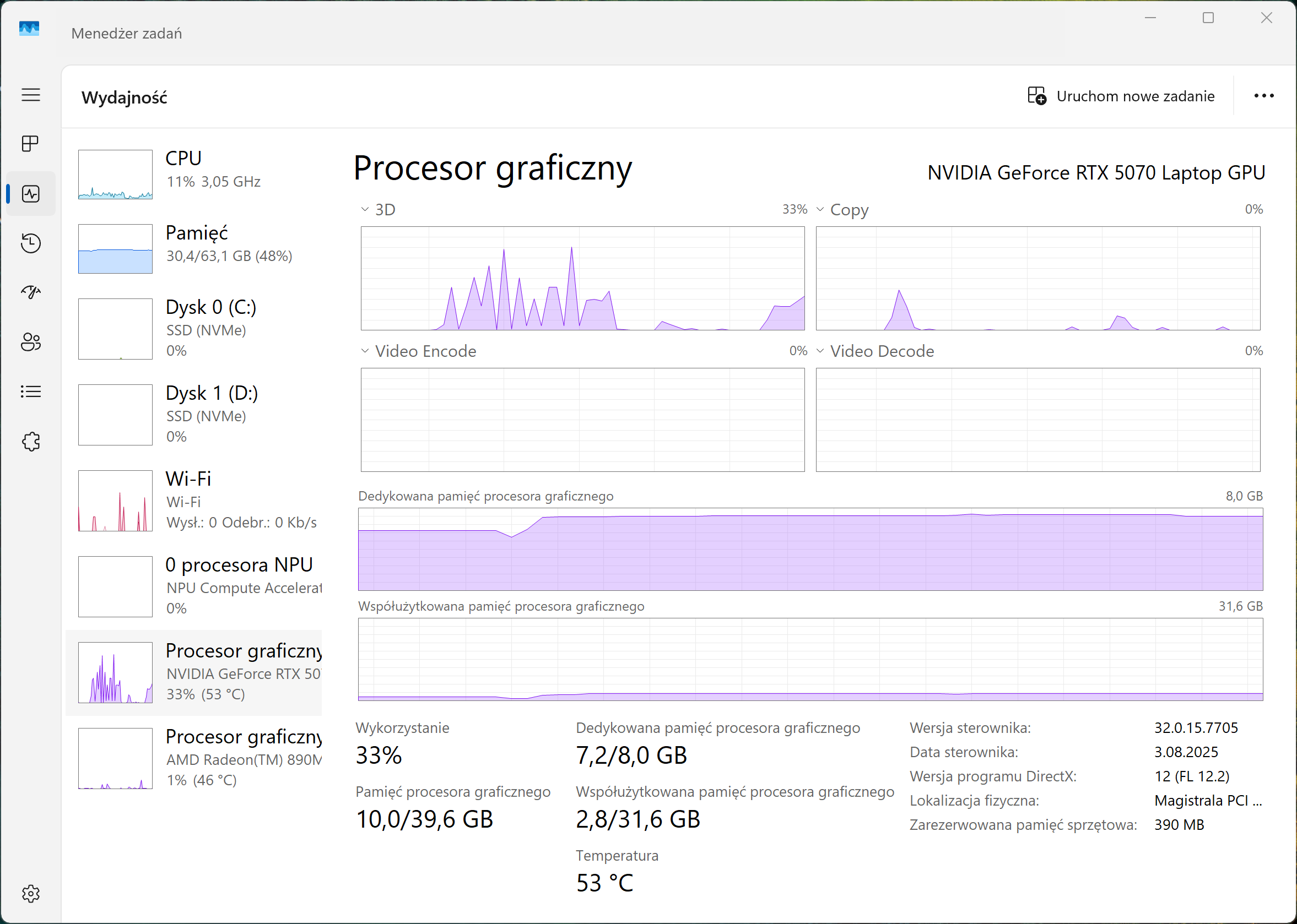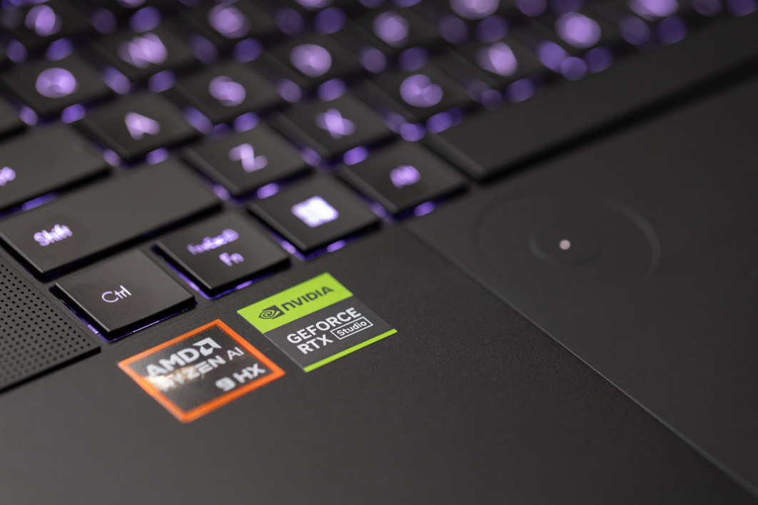 Do tego karta graficzna - GeForce RTX 5070 z 8 GB pamięci GDDR7, która w praktyce przejmuje część zadań obciążających CPU. To aktualnie jedna z najszybszych jednostek NVIDIA Studio do laptopów, zaprojektowana specjalnie pod kątem wyższej wydajności w zakresie generowania obrazów przez AI, edycji foto i wideo oraz renderowania 3D.