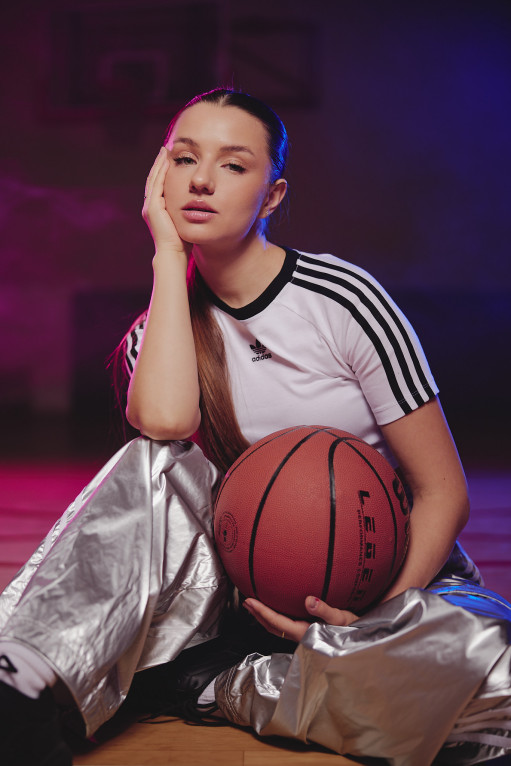 Przeglądając profile uznanych fotografów sportowych, niemal zawsze pojawiają się podobne zdjęcia. Kontrastowe światło z przodu, dwie kolorowe kontry + dym. Olga założyła jasną stylizację, która zdecydowanie lepiej łapie kolor niż choćby czerń. Ja dobrałem kolory i zacząłem pomiary światła. Wybrałem niebieski i róż - lubię to połączenie!