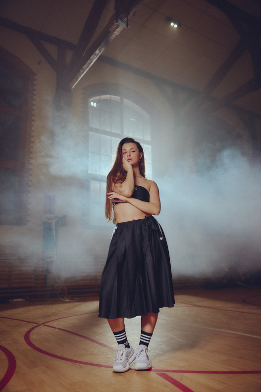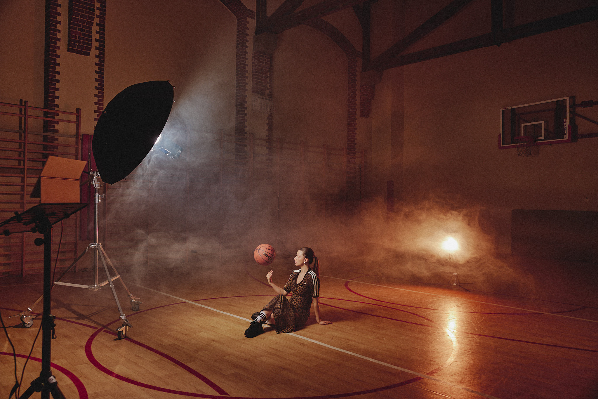 Kiedy wszystko było już ustawione, włączyłem dużą wytwornicę dymu, poczekałem, aż dym trochę osiądzie, zrobiłem serię zdjęć i gotowe! Ważne tylko, żeby dymić między modelkę, a tylne lampy. Dodatkowo, jeśli modelka usiądzie na podłodze, trzeba też obniżyć lampy, ale generalnie zrobienie takich zdjęć jest niesamowicie proste!