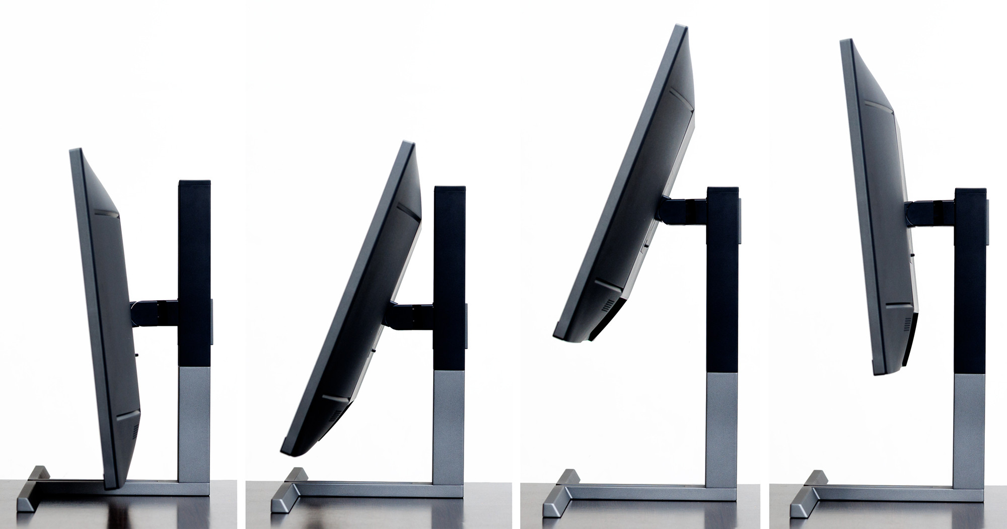 Kolumna pozwala regulować położenie monitora we wszystkich płaszczyznach, w dość standardowym zakresie: pochylanie od -6.5 do 23 stopni, +/-15 stopni na boki, góra-dół w zakresie 15 cm oraz obracanie do pionu o 90 stopni - ale co warto podkreślić - w lewo lub w prawo.