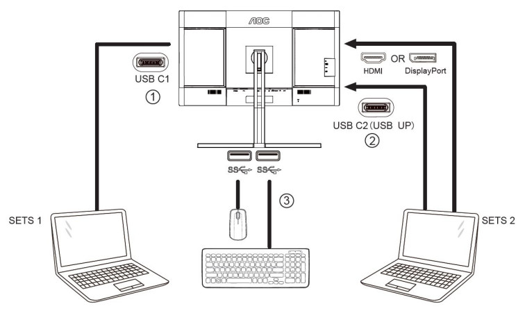 Kolejnym mocnym atutem monitora AOC U32U3CV jest funkcja KVM, czyli możliwość podłączenia do niego dwóch komputerów (np. laptopa i stacjonarnego) i obsługiwanie ich za pomocą jednej myszy i klawiatury. Przełączanie między tymi komputerami odbywa się po prostu poprzez wybór przyciskiem na monitorze odpowiedniego wyjścia sygnałowego.