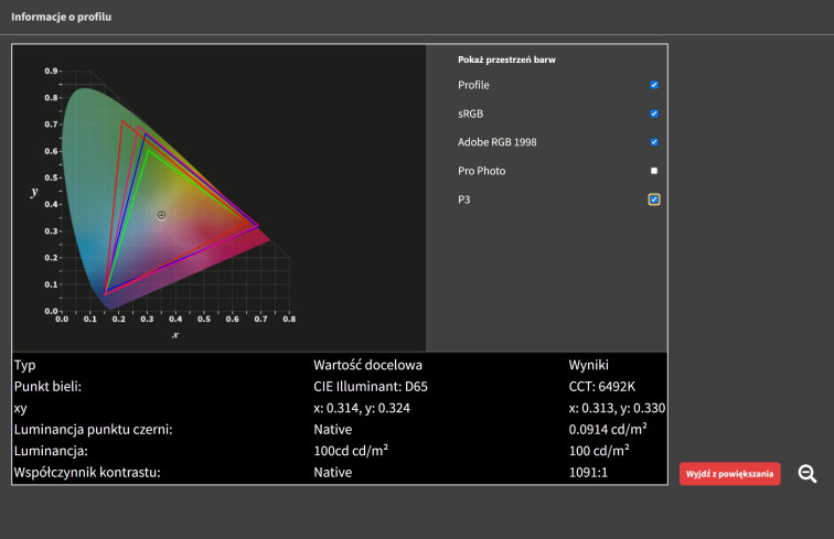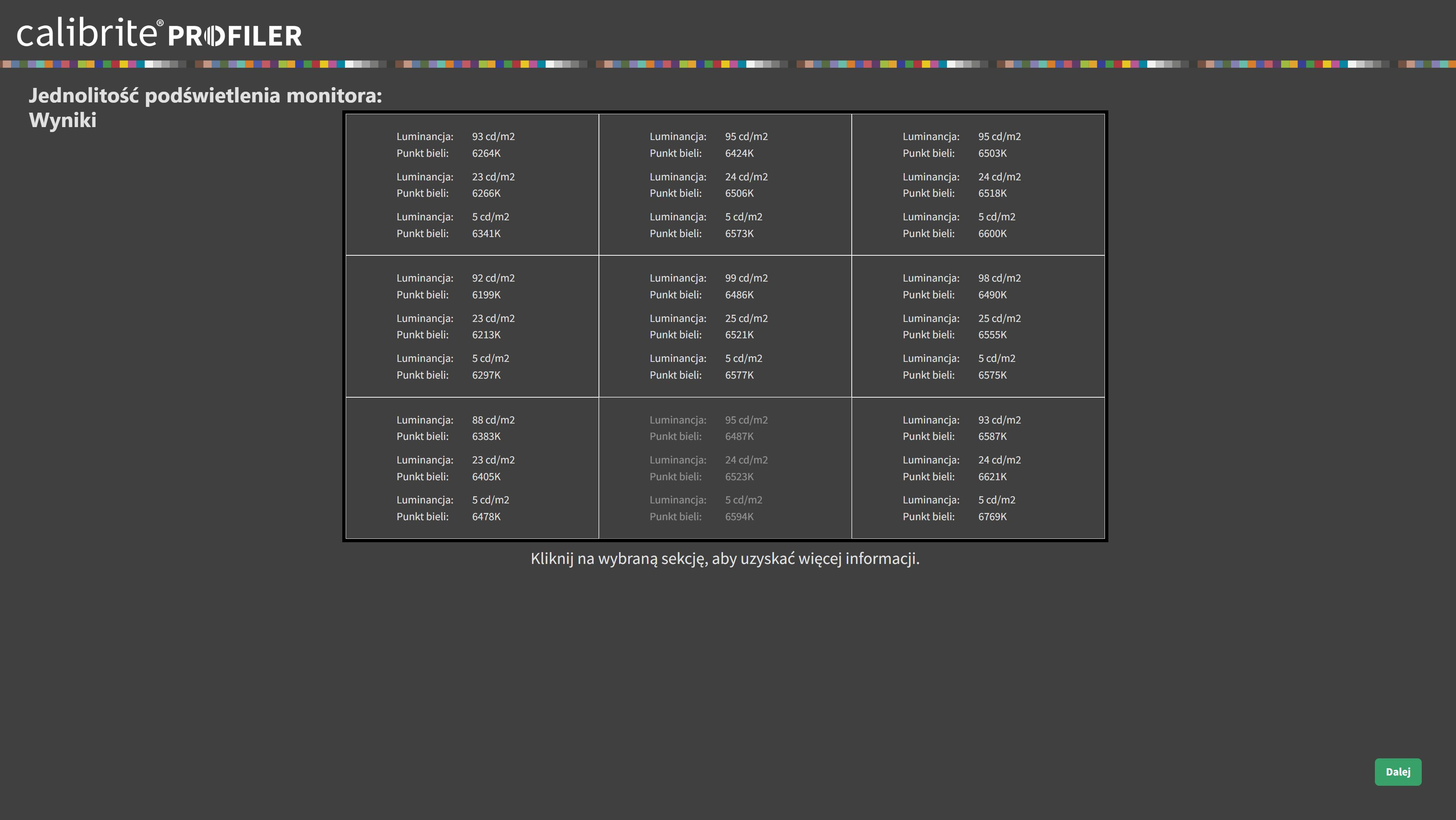W efekcie testy kalibracji i pomiary jakości wyświetlanego obrazu wykonane zostały na oprogramowaniu Calibrite Profiler. Kalibracja nie jest wtedy sprzętowa, ale dobrze pokazuje jaki potencjał tkwi w tym monitorze…