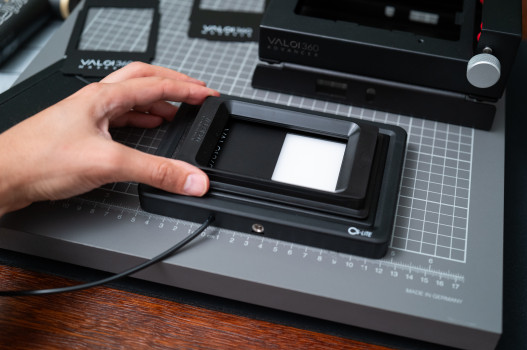 Valoi pozwala zamocować holder negatywu bezpośrednio na podświetlarce. Tak powstaje najprostszy i najtańszy set-up, który będzie jak najbardziej ok. do amatorskich zastosowań i skanowania zdjęć z tanich kompaktów czy jednorazówek. Jeśli jednak mamy większe ambicje, warto odsunąć negatyw od lampy za pomocą specjalnej platformy.