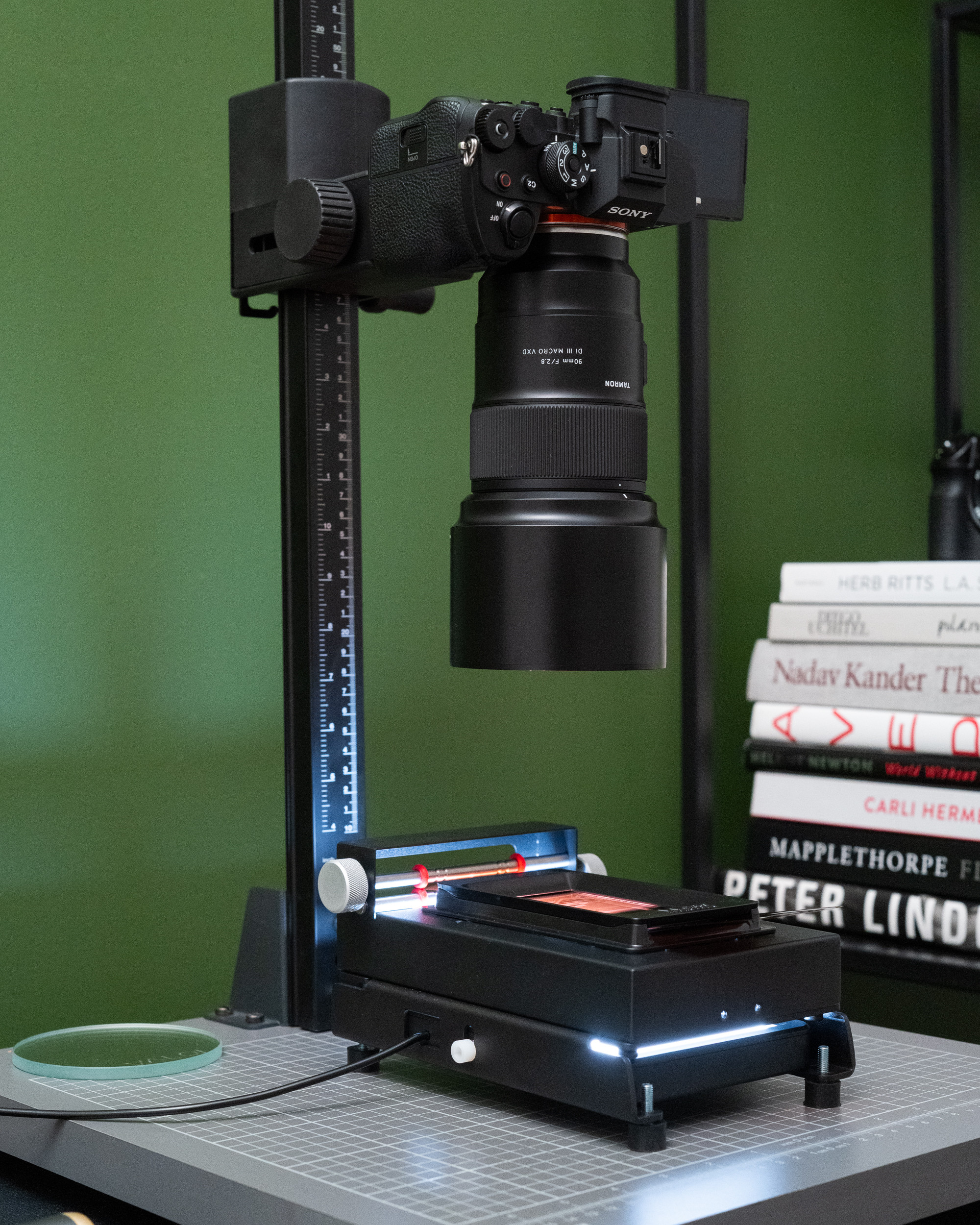 Bo to co odstrasza wielu entuzjastów, to właśnie konieczność budowania całego stanowiska do digitalizacji. Oprócz cyfrowego aparatu i obiektywu macro, potrzebujemy tutaj również solidnej kolumny reprodukcyjnej (i miejsca w którym ją ustawimy), oraz wiedzy jak zadbać o wypoziomowanie, dobrać parametry i w końcu, jak poprawnie odwrócić kolory w specjalnym oprogramowaniu (zazwyczaj również płatnym).