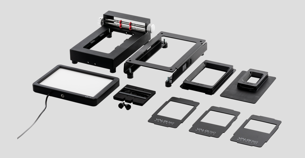To czym Valoi zdobyło rynek, to uproszczony do granic, oparty na tubach dystansowych system Easy, pozwalający łatwo połączyć „na sztywno” aparat z podświetlarką. Takie rozwiązanie wyeliminowało podstawowy problem pojawiający się podczas skanowania - precyzyjne wypoziomowanie matrycy aparatu względem negatywu.