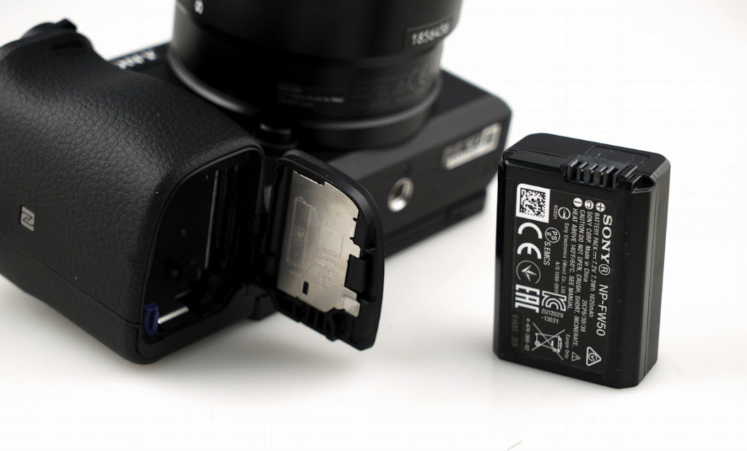 Aparat zasilany jest akumulatorem NP-FW50 o pojemności 1020 mAh - tym samym, który używany jest przez aparaty z serii A7. W pełni naładowany akumulator według producenta pozwoli nam na wykonanie około 350 zdjęć, z włączonym ekranem LCD. W praktyce bateria wystarcza na około 3 godziny umiarkowanego fotografowania. Nie jest to świetny wynik, ale nie odbiega zanadto od tego, co oferuje obecnie większość bezlusterkowców na rynku.