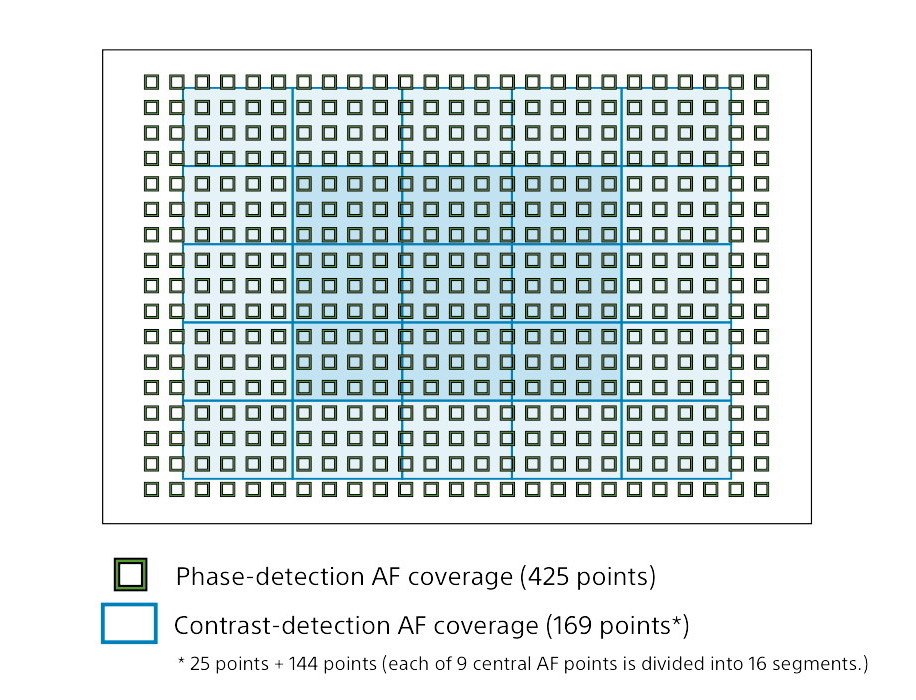 Mimo wszystko, jego skuteczność śmiało można porównać z tą oferowaną przez profesjonalne lustrzanki. Jeżeli weźmiemy pod uwagę obszar pokrycia kadru przez punkty AF, oraz fakt, że wszystkie pozostają funkcjonalne także w przypadku podpięcia obiektywów z mocowaniem Sony A, lustrzanki zostają daleko w tyle. Nareszcie znajdujemy też godnego konkurenta doskonałego systemu DFD (Depth From Defocus) oferowanego przez aparaty Panasonic.