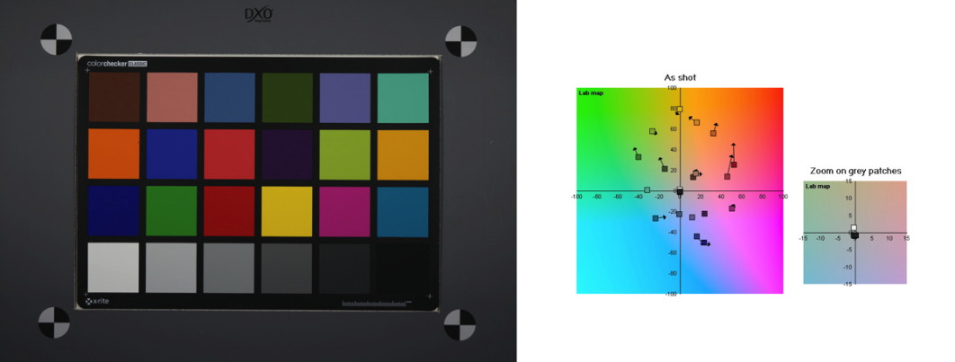 Aparat ma bardzo delikatną tendencję do podbijania cieplejszych tonacji, jednak odchylenia rzędu 15 jednostek na skali przestrzeni Lab nie będą zauważalne na zdjęciach. Pod względem reprodukcji kolorów aparat wypada znakomicie i oferuje bardzo przyjemną dla oka, nasyconą kolorystykę.