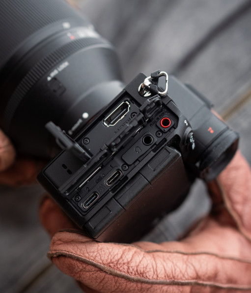 Aparat nadal oferuje podwójny slot kart z jednym slotem obsługującym również karty CFexpress A, ale odświeża zestaw portów - oferuje wreszcie pełnowymiarowe złącze HDMI a także dodatkowy, drugi port USB-C, który zastępuje wysłużone i nieużywane już dzisiaj złącze microUSB. Dzięki temu, aparat pozwolić ma wygodną pracę w sytuacjach gdy potrzebujemy jednoczesnej łączności i stałego zasilania aparatu. Warto jedynie pamiętać, że choć obydwa gniazda używają złącza USB-C i obydwa obsługują zasilanie w ramach Power Delivery, to tylko górne oferuje szybkie transfery w ramach interfejsu 3.2 Gen 2 (10 Gb/s). Dolne złącze to nadal USB 2.0 o przepustowości 480 Mb/s.