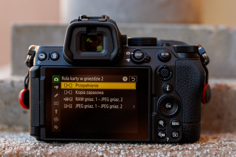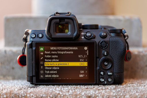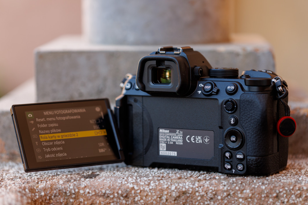 Profesjonalnym akcentem w Z5 II są także dwa sloty SD zgodne z UHS-II. Umożliwiają one jednoczesny zapis RAW i JPEG, tworzenie kopii zapasowej lub rozdzielenie materiału foto i wideo na osobne karty, co w praktyce zwiększa bezpieczeństwo pracy komercyjnej.