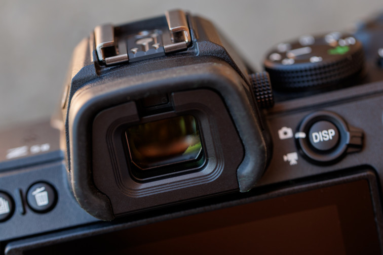 Wizjer elektroniczny ma rozdzielczość 3,69 Mp i powiększenie 0,80x, czyli parametry zbliżone do poprzednika, ale wyróżnia go bardzo wysoka jasność szczytowa na poziomie 3000 nitów. W praktyce daje to kontrastowy, czytelny podgląd w ostrym świetle oraz w słabszym oświetleniu, choć przy bardzo niskiej ilości światła pojawia się delikatne smużenie wynikające z odświeżania 60 Hz.