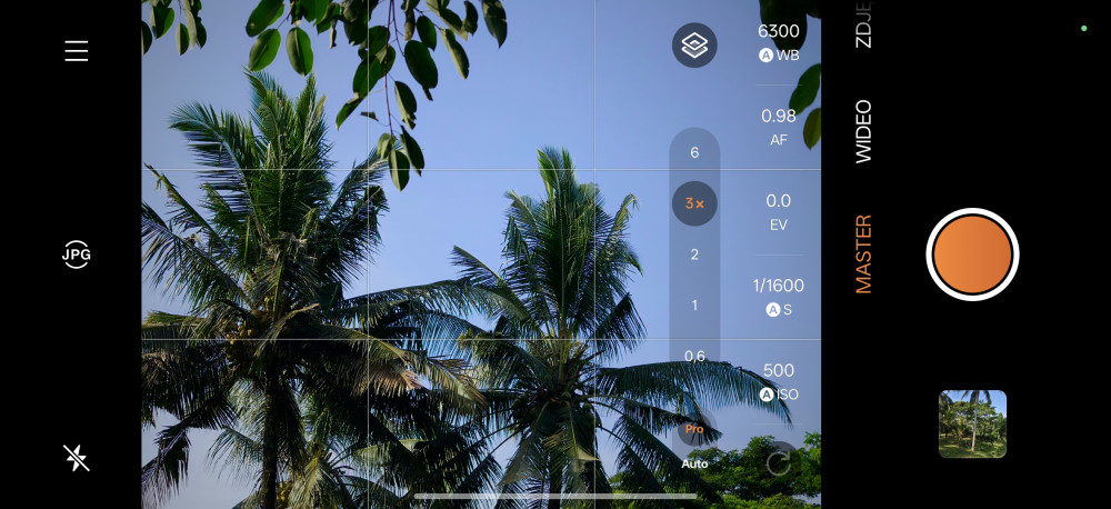 Aparat oferuje też tryb MASTER, który pozwala nam ręcznie kontrolować parametry ekspozycji (PRO), lub jedynie ograniczyć ingerencję systemowych korekcji (Auto). Otrzymujemy wówczas nieco bardziej naturalne kolory i wygląd zbliżony do wywołanego na domyślnych ustawieniach pliku RAW.