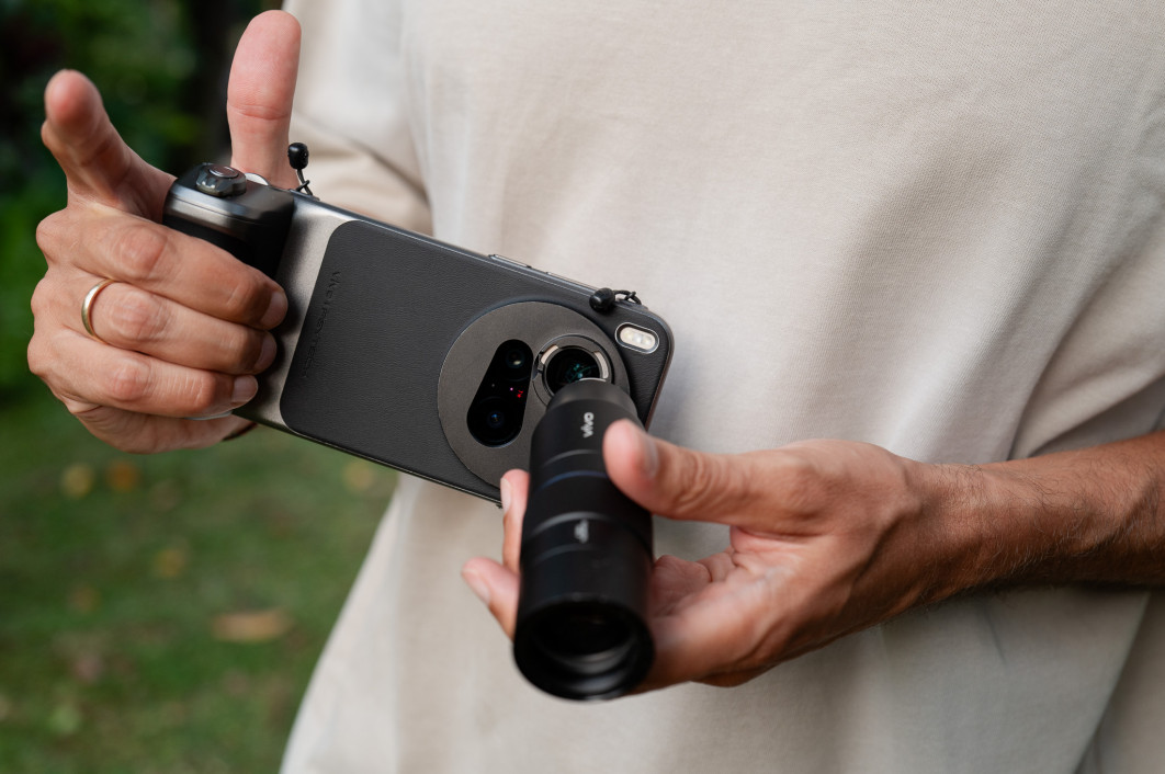 Etui ma mocno „techniczną” stylistykę, co zapewne będzie się podobać. Jakość wykonania budzi zaufanie i przede wszystkim obudowa wydaje się być dobrze pomyślana. W przeciwieństwie do OPPO, które niedawno pokazało własny system tele zaprojektowany wspólnie z Hasselbladem, tu mocowanie konwertera nie zasłania i nie blokuje dostępu do pozostałych modułów. A więc nie utrudnia korzystania z różnych ogniskowych naprzemiennie.
