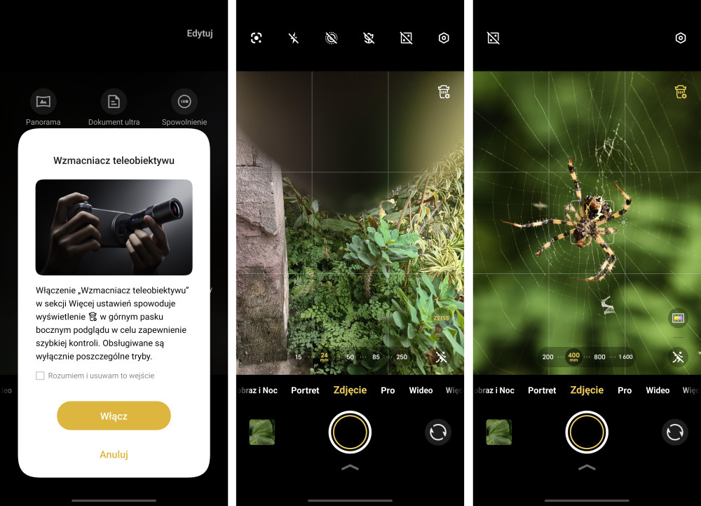 A zakres ten możemy oczywiście jeszcze wydłużyć cyfrowo. W trybie konwertera na dolnym suwaku pojawiają się również ogniskowe 400, 800 i 1600 mm. I trzeba przyznać, że w zastosowaniach "socialowych" będę one w pełni użyteczne. Smartfon wykorzystuje tu ponownie rozdzielczość 200 Mp modułu tele by tworzyć wyraźne i szczegółowe zdjęcia 12 Mp.