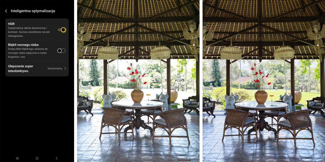 Ultra pozwala też w pewnym stopniu kontrolować siłę przetwarzania obrazu. Z poziomu menu możemy wyłączyć funkcję HDR, co naszym zdaniem nie ma jednak sensu. Tryby te realizowane są dziś naprawdę dobrze, a ich wyłączenie zwyczajnie obnaża niedostatki mniejszych matryc i na stałę otwartej przysłony. Zwłaszcza w bardzo mocnym słońcu, gdy dynamika tonalna jest dla sensora nie do udźwignięcia.