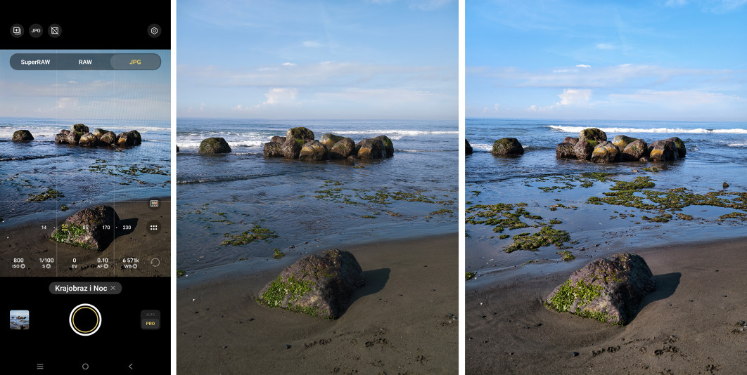 Zaawansowane przetwarzanie w trybie pełnej automatyki nie powinno nas oczywiście specjalnie dziwić, bo zadaniem smartfona w tym trybie jest zapewnienie możliwie najlepszego obrazka i zdjęć, które nie wymagają już żadnej edycji. Dla bardziej wymagających fotografów przewidziano tryb Pro i przede wszystkim równoczesny zapis JPEG + RAW.