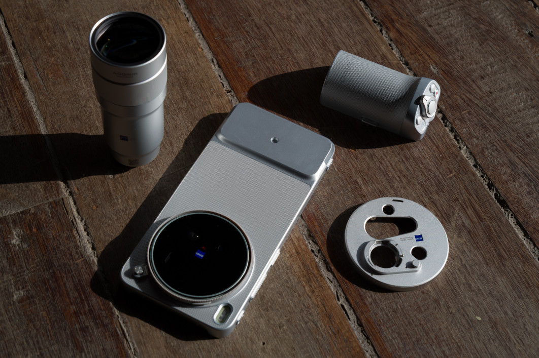 W stabilnym kadrowaniu pomóc ma też opcjonalny grip, który tym razem jeszcze rozwinięto. Wpinamy go przez USB-C, a wtedy automatycznie przejmuje kontrolę nad obsługą aparatu (i jednocześnie doładowuje smartfon ukrytym wewnątrz ogniwem 2300 mAh). Zdecydowanie poprawia chwyt, a dwustopniowy spust potęguje jeszcze wrażenie, że mamy do czynienia z prawdziwym aparatem. Nie zawsze jest on jednak najlepszym rozwiązaniem do pracy z telekonwerterem.