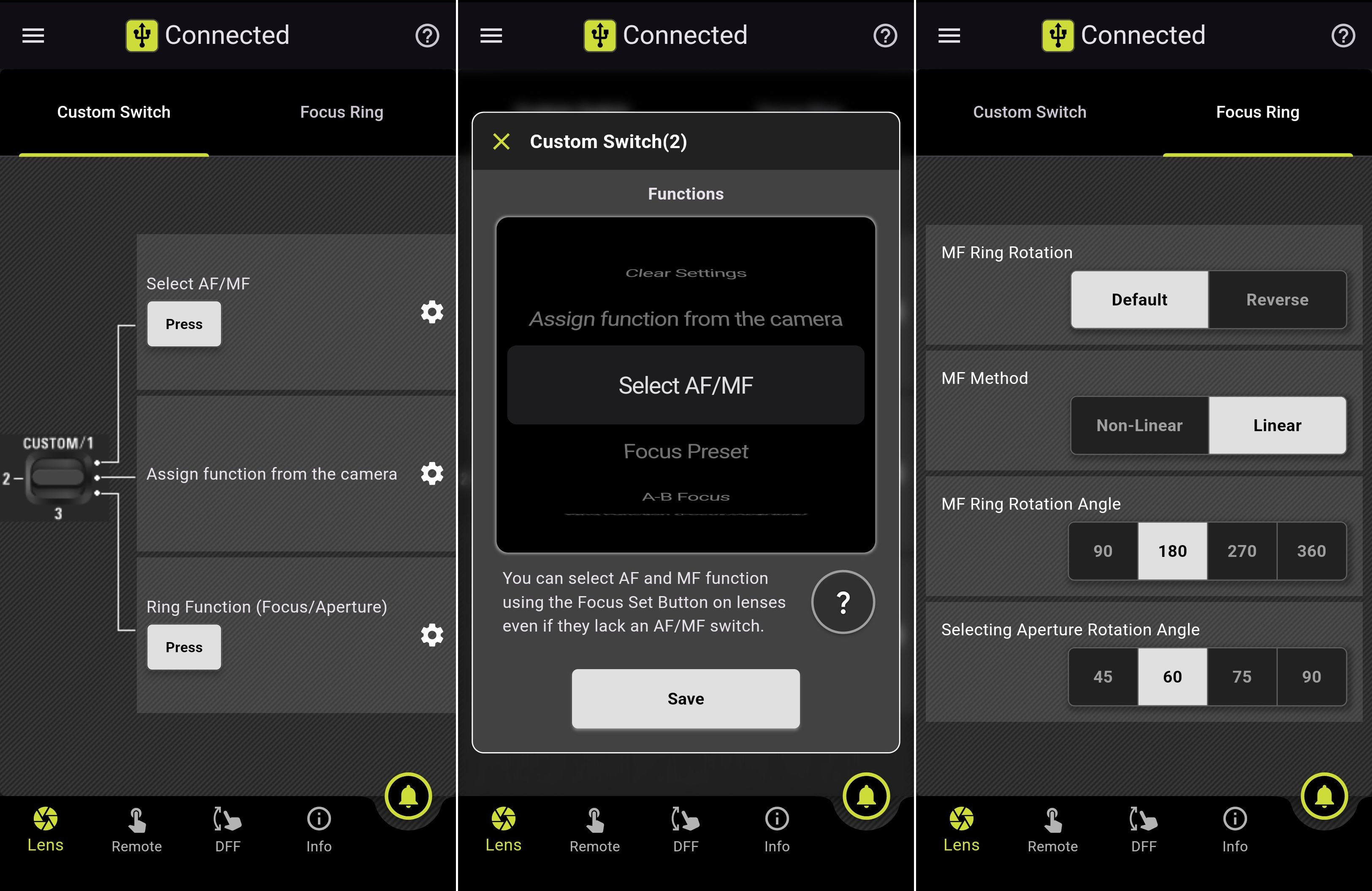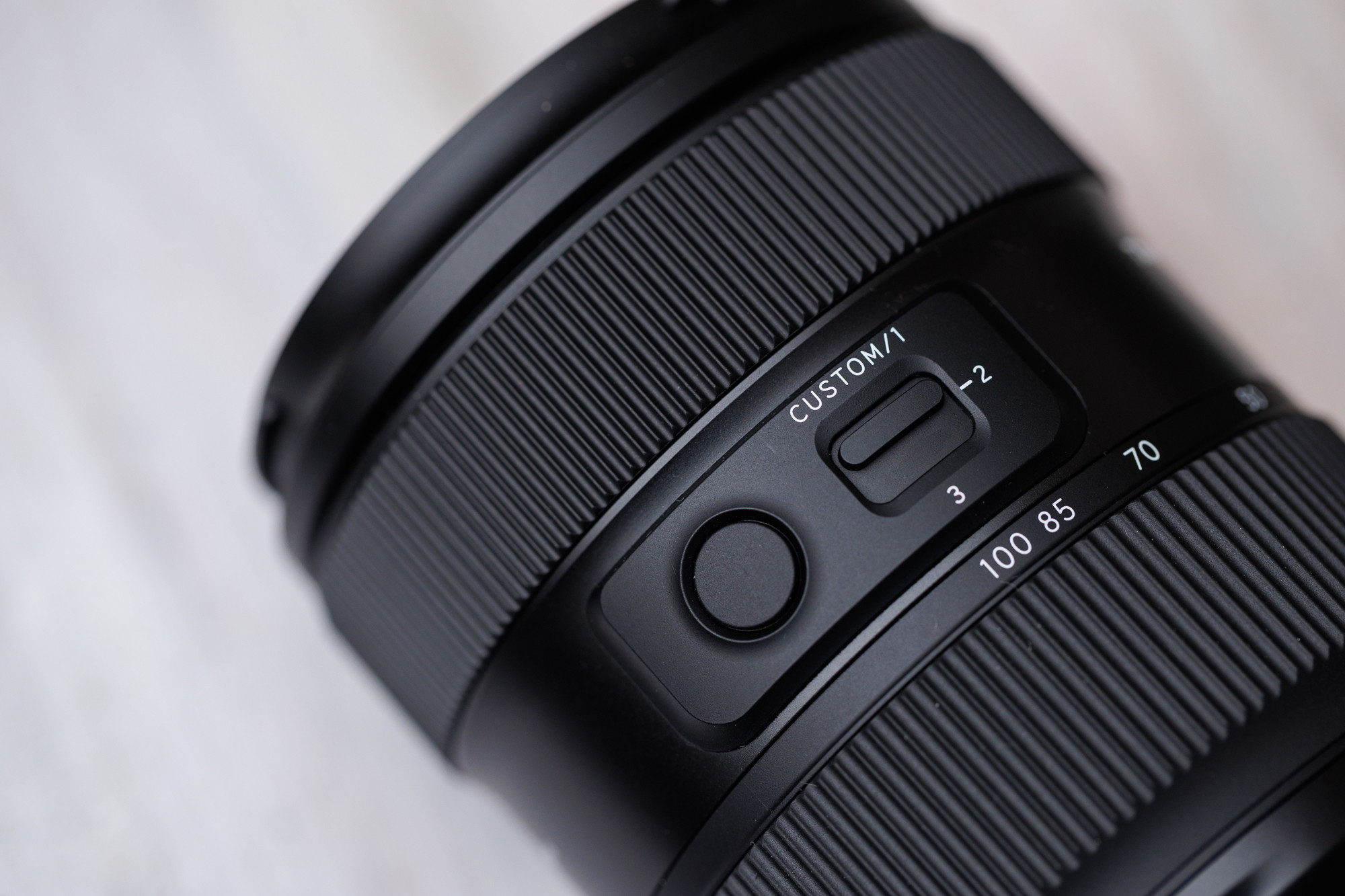 Na obiektywie do dyspozycji jest jeden przycisk, ale z przełącznikiem CUSTOM 1/2/3. W rezultacie z poziomu aplikacji Tamron Lens Utility można przypisać mu trzy różne funkcje. Np. jedną z nich może być opcja przypisana w menu aparatu, pozostałe dwie związane z działaniem obiektywu, jak AF/MF, preset AF, funkcja pierścienia ostrości czy pozycja na nieskończoność do zdjęć astro.