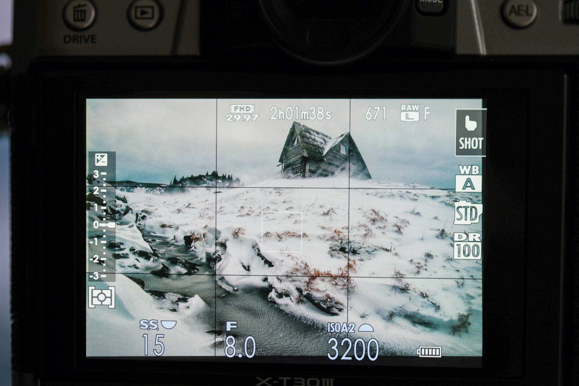Po włączeniu siatka będzie widoczna na ekranie LCD oraz w wizjerze. W aparatach Fujifilm jest subtelna i nie obniża widoczności elementów kadru.